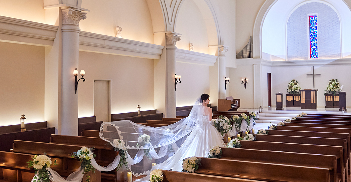 キリスト教式とは、結婚式場にあるチャペルもしくは本物の教会で行う結婚式のことです。 憧れのバージンロードを歩いて入場し、牧師の指示のもと、キリスト教の神にふたりの愛を誓う挙式スタイルです。